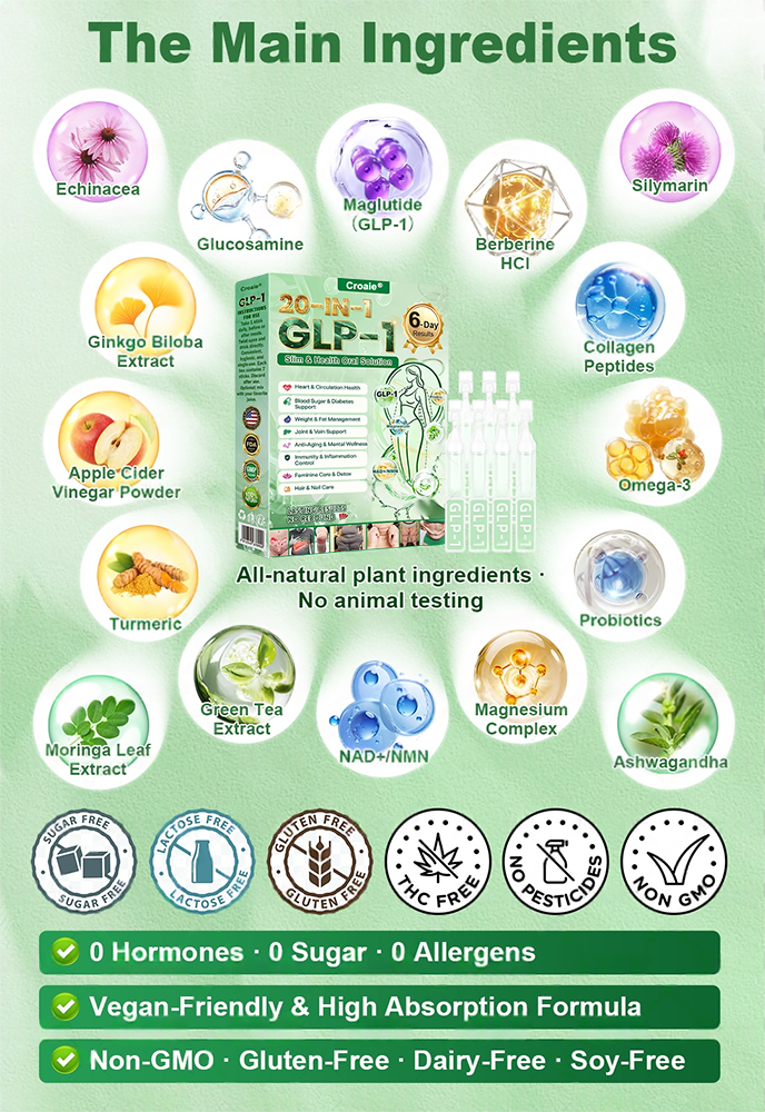 Croaieยฎย ๐๐๐ฃ-๐ญ ๐๐-๐ข๐ง-๐ ๐๐ฅ๐ข๐ฆ & ๐๐๐๐ฅ๐ญ๐ก ๐๐ซ๐๐ฅ ๐๐จ๐ฅ๐ฎ๐ญ๐ข๐จ๐ง, developed through 20+ years of research by over 30 experts, is designed for all adults and every body type. It combines Tirzepatide (GLP-1) with natural extracts to help balance blood sugar, curb appetite, and burn fat for gradual, healthy weight loss. Fortified with Collagen Peptides, it also supports skin firmness during slimming, while delivering multiple high-efficiency ingredients that enhance immunity, improve digestion, support gut & womenโs health, boost energy, reduce fatigue, and restore a youthful state. Made in GMP-certified facilities under U.S. and EU standards, it provides a safe, science-backed, needle-free solution for effective weight management and lasting health.